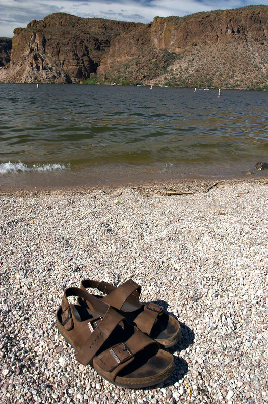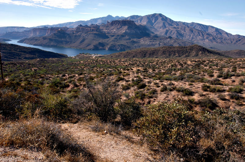 After winding through the desert for a number of very slow-going miles, we came to two beautiful lakes thriving in the desert. Canyon lake, and Apache lake.