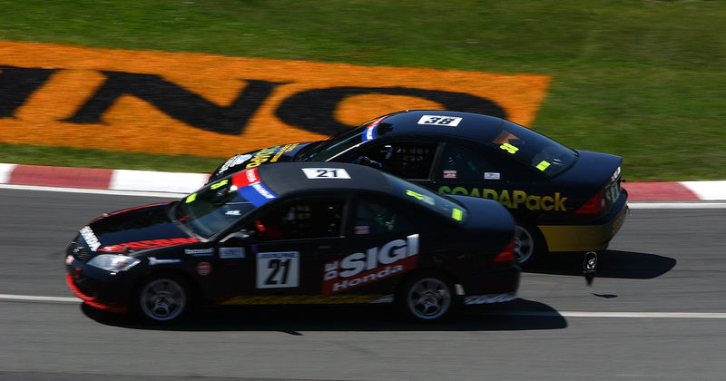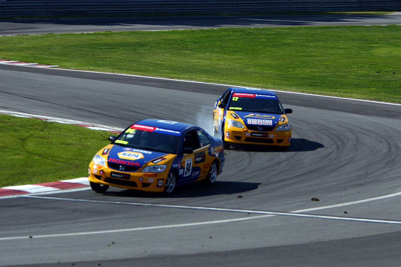 The smoke on the rear Civic are the brakes locking up as the car is pushed to the limits through the turn.
