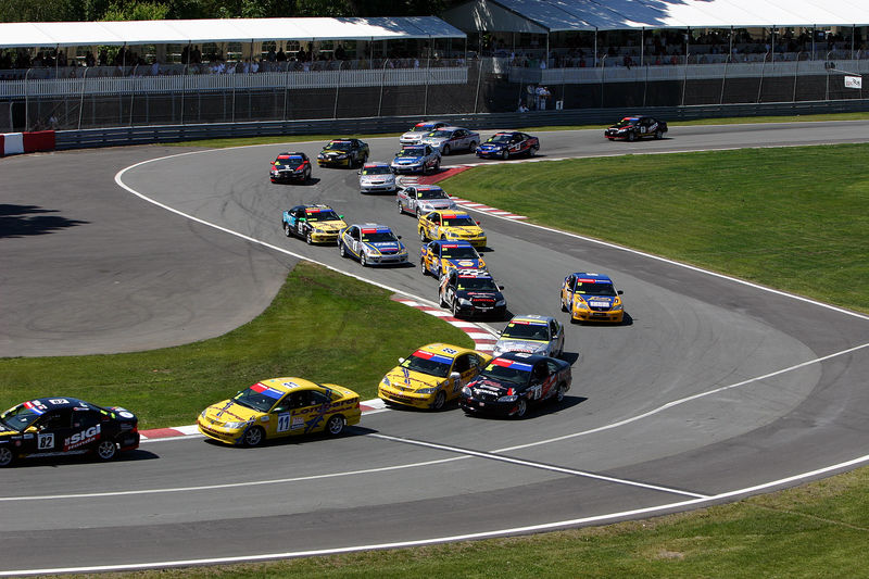 The analogous first turn of the Honda Michelin challenge, in which these less-sophisticated cars bump each other at nearly every turn.