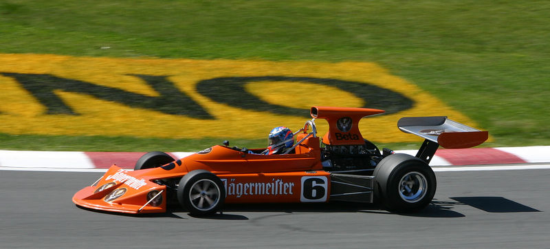 This orange open-wheeler was racing in the Historic Formula Race with replicas of old Formula cars.