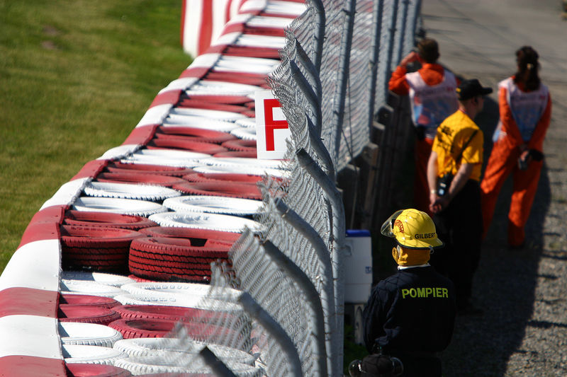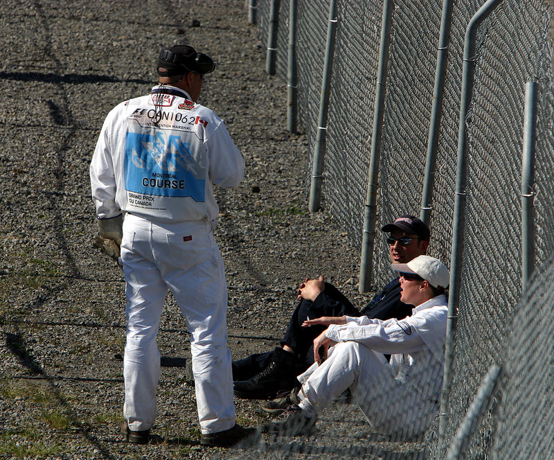 One of the course marshals, preparing for the start of the race, in which he’ll have to help stranded drivers and cars make their way safely off the track.
